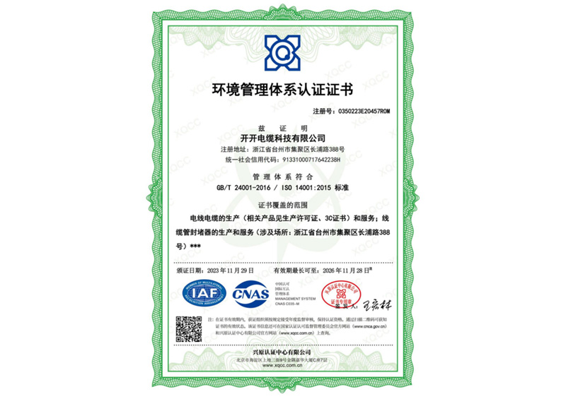 环境管理体系认证证书