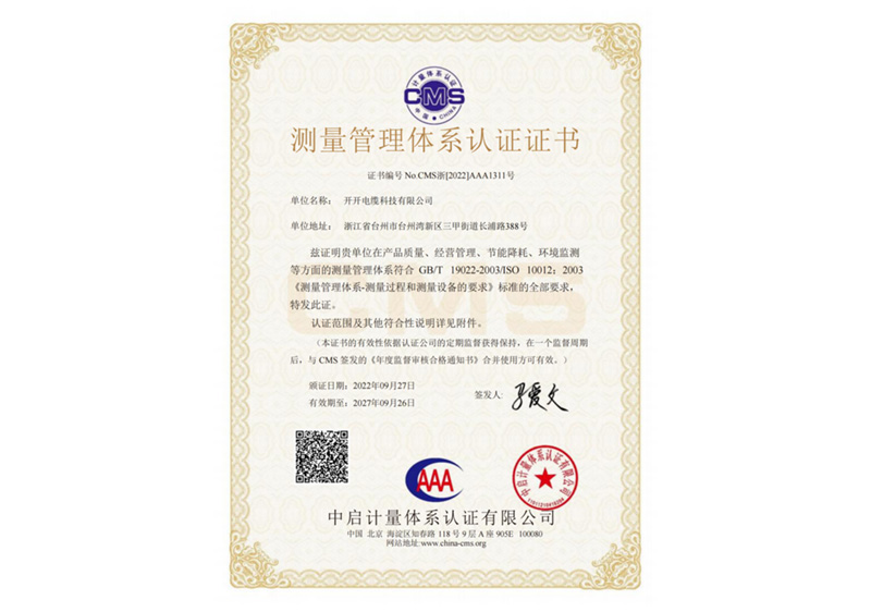 测量管理体系认证证书