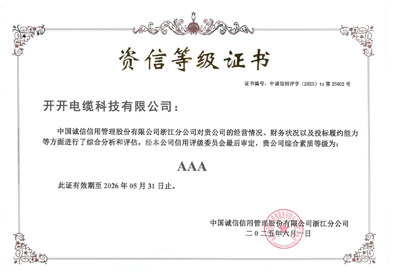 资信等级AAA证书