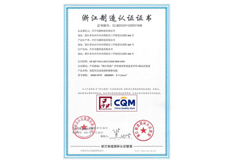 浙江制造认证证书