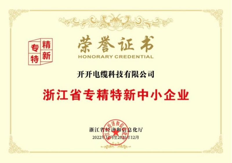 浙江省专精特新中小企业证书