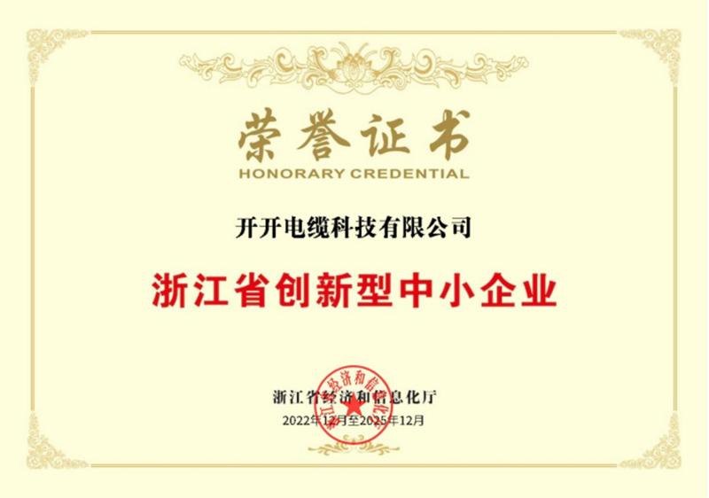 浙江省创新型中小企业证书