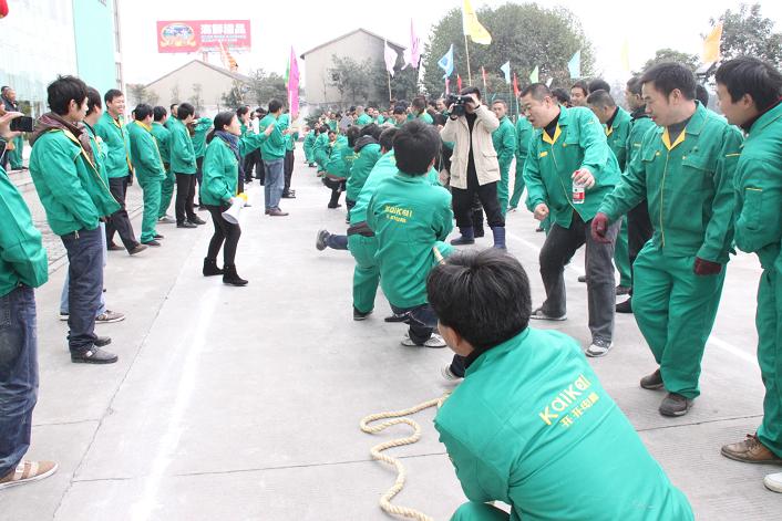 31日上午8:30,在罗向阳总经理的主持下,活动正式拉开帷幕。由各车间、部门组成的各支代表队纷纷亮相,在独具开开特色的拔河、力大无穷、双人拔河、蜈蚣赛跑等项目中大显身手,尽显开开人风采。
