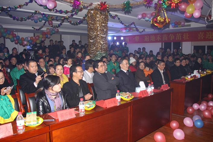 风格迥异的舞蹈、笑点十足的小品、三句半,以及独唱、对唱等精彩纷呈的一个个节目引来现场观众的一片叫好声以及欢笑声。在笑声中观众们嘴吹哨子,千呼万唤着一个个各显特色的节目依次上场。舞台上的表演也美美地满足了观众们的眼球。董事长余纪炎以及总经理罗向阳的现场献唱更是将晚会气氛推向了高潮。