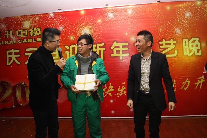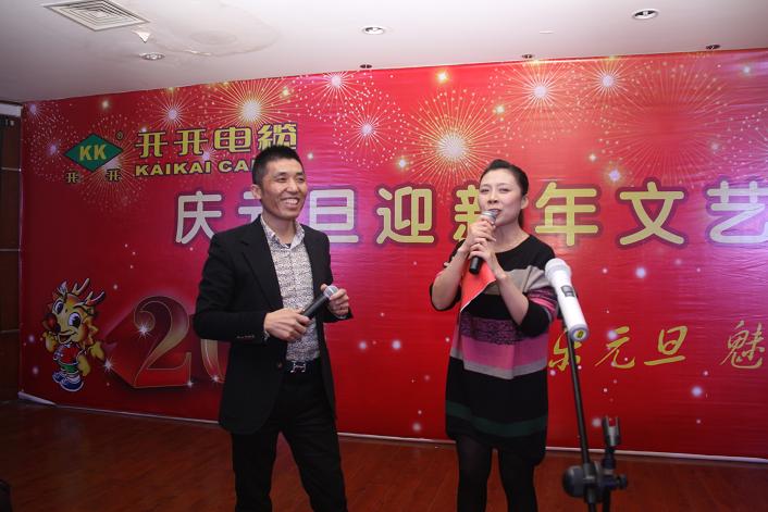 本网讯(记者 陆明杰)元旦是我国的传统节日,是新一年的开端。为庆祝2012年元旦佳节,同时进一步推进公司企业文化活动的蓬勃发展,丰富职工文化生活,活跃工作氛围,2011年12月31日,开开电缆在椒江厂区举行了隆重的“2012年元旦文化经济活动暨元旦联欢晚会”。董事长余纪炎、总经理罗向阳、总工程师徐华胜、营销总监卢庆豪、总经理助理揭乐梅等公司领导出席此次活动。