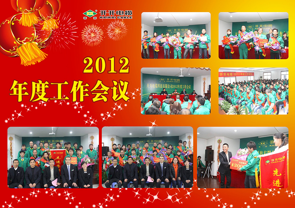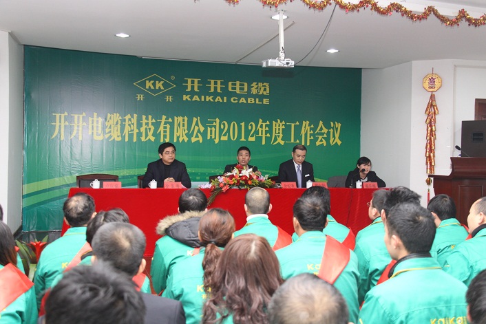 本网讯 (记者 陆明杰)2012年1月1⒋日,开开电缆科技有限公司在路桥螺洋上寺前厂区隆重召开了2012年度工作会议。董事长余纪炎、总经理罗向阳、副总经理卢庆豪、总工程师徐华胜、总经理助理揭乐梅等公司领导出席了会议。