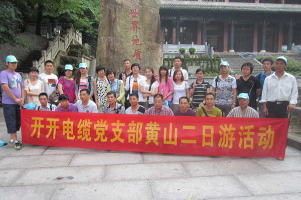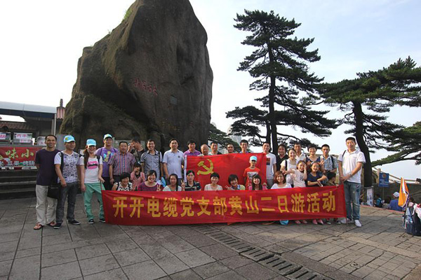 在公司领导的关心下,党支部07月14日-15日组织在公司工作的全体共产党员进行了黄山二日游活动,游览黄山著名景点:云谷寺、始信峰区、北海景区、光明顶,其间爬过陡峭的莲花峰,看到了名松迎客松,参观黄山徽州古文化城,浏览了屯溪老街、宏村。一路上欢声笑语,带着党旗、横幅留影留念留下了珍贵的瞬间。黄山二日游给全体共产党员留下了深刻的印象,一路攀登,我们对大自然的美妙感叹心中,又感佩于征服大自然的勇气。通过这次集体活动增加了党支部的凝聚力,激发了每个党员干好工作的热情和信心,为开开的腾飞贡献力量。