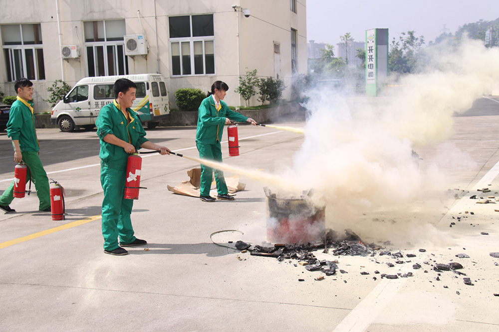 为提高员工的消防意识,检验公司消防设施的功能,增强员工在紧急情况下的应变能力、自我防护能力,本月21日,公司在椒江厂区组织了一场消防演习。