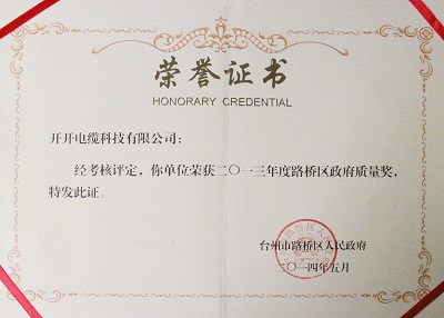热烈祝贺我司荣获2013年度路桥区政府质量奖。