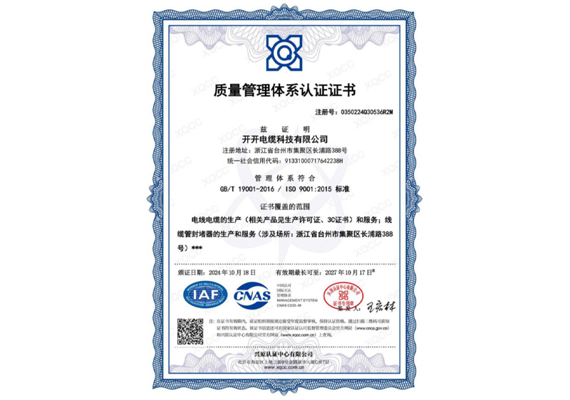 质量管理体系认证证书