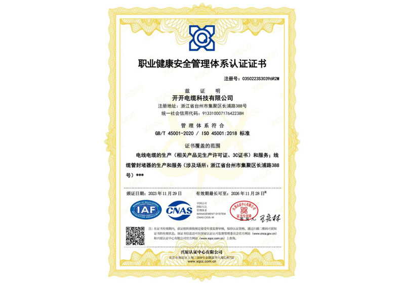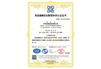 职业健康安全管理体系认证证书