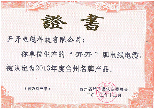 2013年台州名牌产品