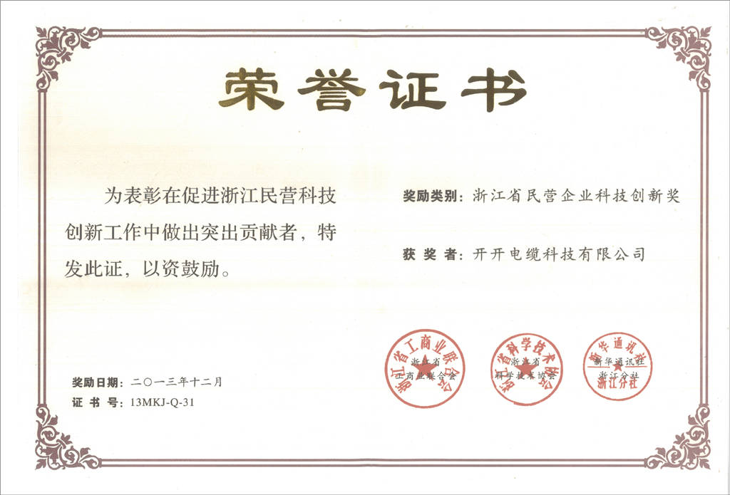 浙江省民营企业科技创新奖