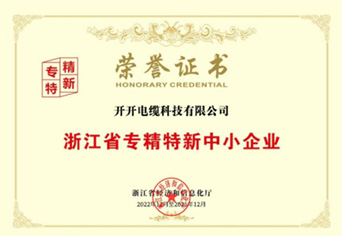 浙江省专精特新中小企业证书