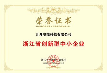 浙江省创新型中小企业证书