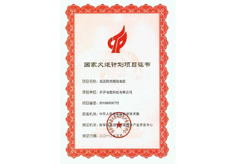 国家火炬计划项目证书