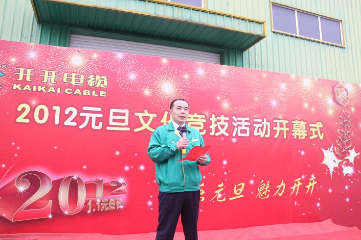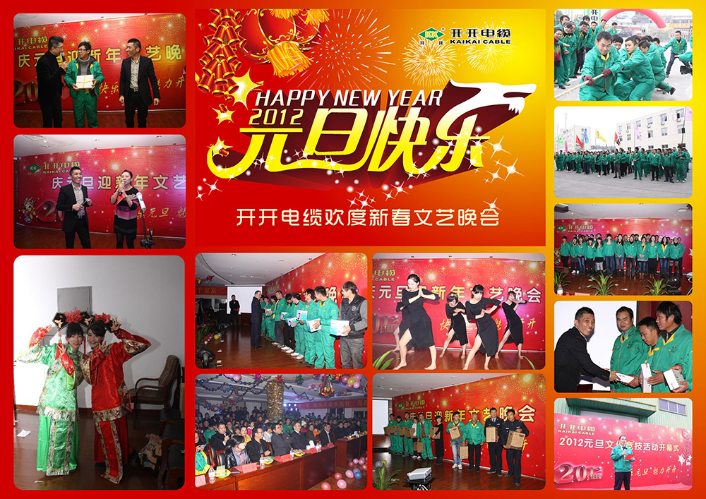 本网讯(记者 陆明杰)元旦是我国的传统节日,是新一年的开端。为庆祝2012年元旦佳节,同时进一步推进公司企业文化活动的蓬勃发展,丰富职工文化生活,活跃工作氛围,2011年12月31日,开开电缆在椒江厂区举行了隆重的“2012年元旦文化经济活动暨元旦联欢晚会”。董事长余纪炎、总经理罗向阳、总工程师徐华胜、营销总监卢庆豪、总经理助理揭乐梅等公司领导出席此次活动。