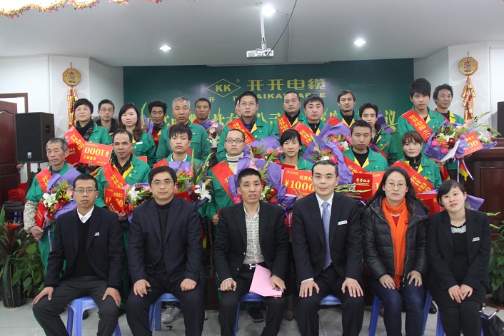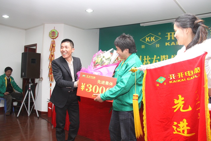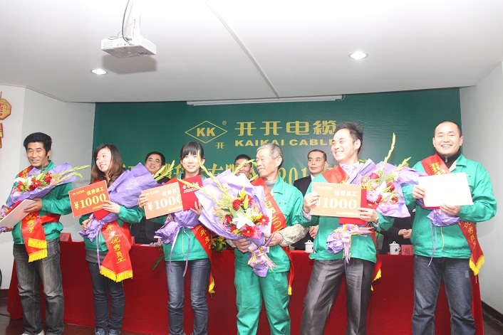 本网讯 (记者 陆明杰)2012年1月1⒋日,开开电缆科技有限公司在路桥螺洋上寺前厂区隆重召开了2012年度工作会议。董事长余纪炎、总经理罗向阳、副总经理卢庆豪、总工程师徐华胜、总经理助理揭乐梅等公司领导出席了会议。