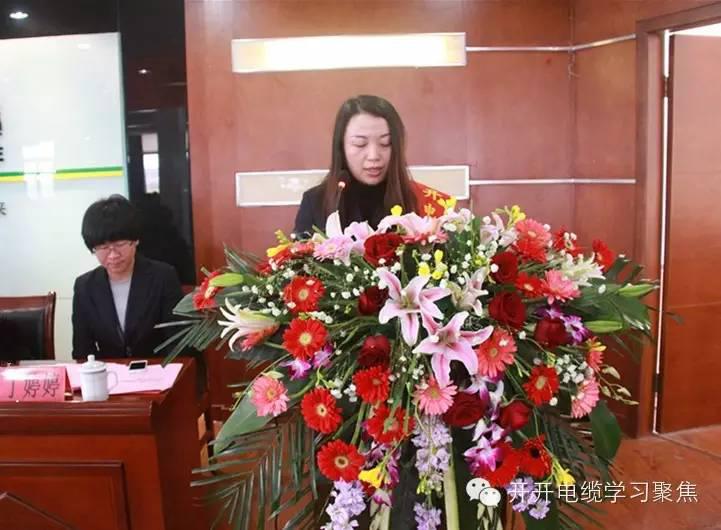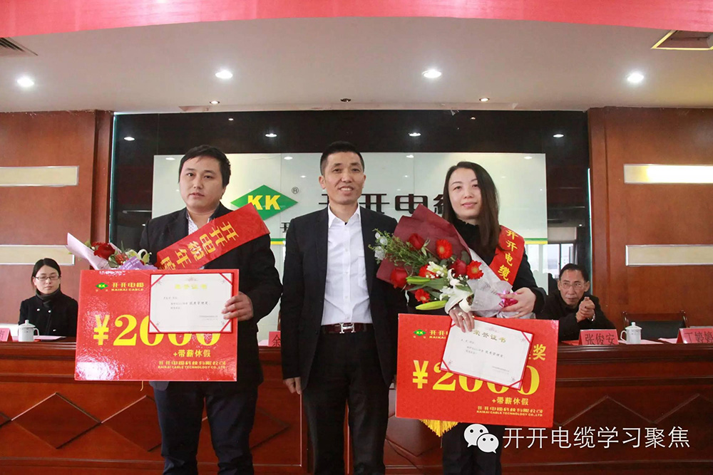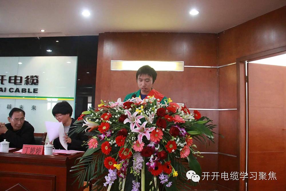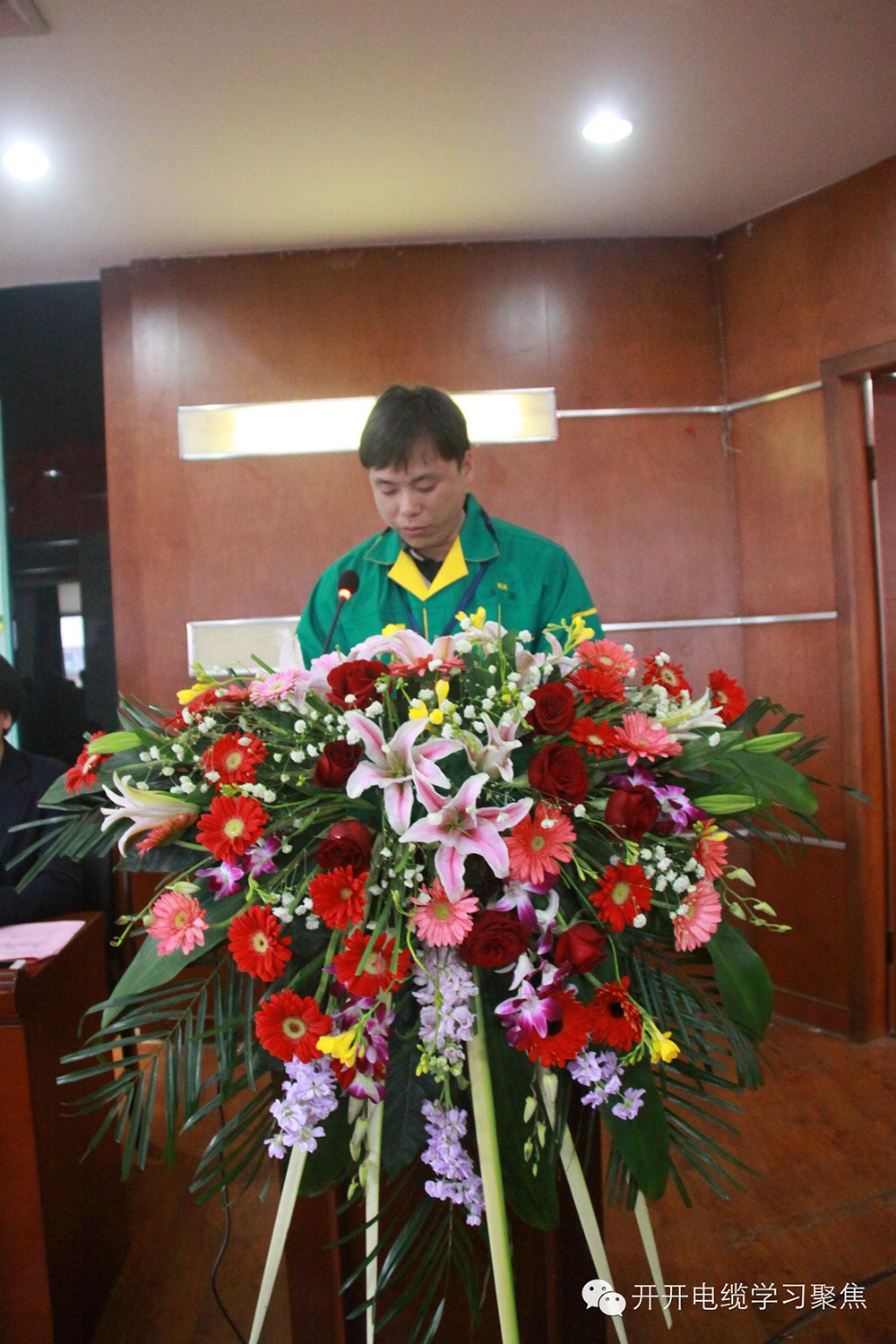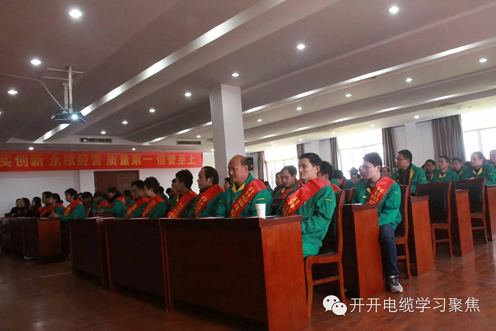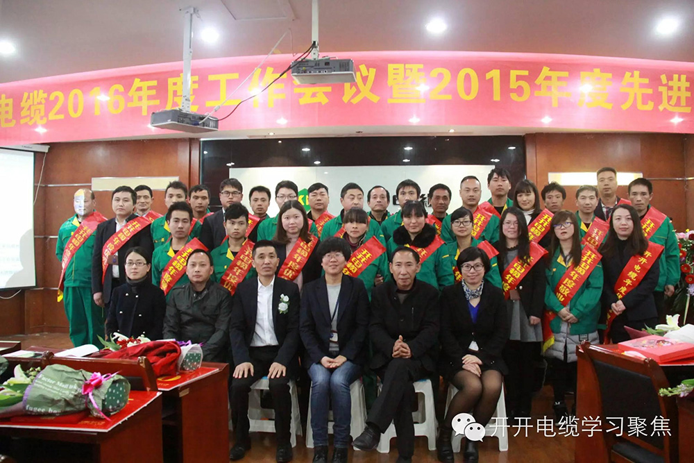 2016年2月23日,开开电缆全体员工在椒江厂区召开了2016年度工作会议暨2015年度先进表彰大会。本次会议由总经理助理丁婷婷主持,公司董事长余纪炎、财务总监王一全、营销系统分管领导林婉贞、技术总工赵怀顺、生产系统负责人张俊安参加了本次会议。各相关负责人分别作了本系统的2015年度工作总结及2016年度的工作计划。