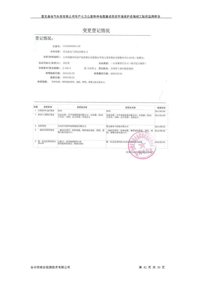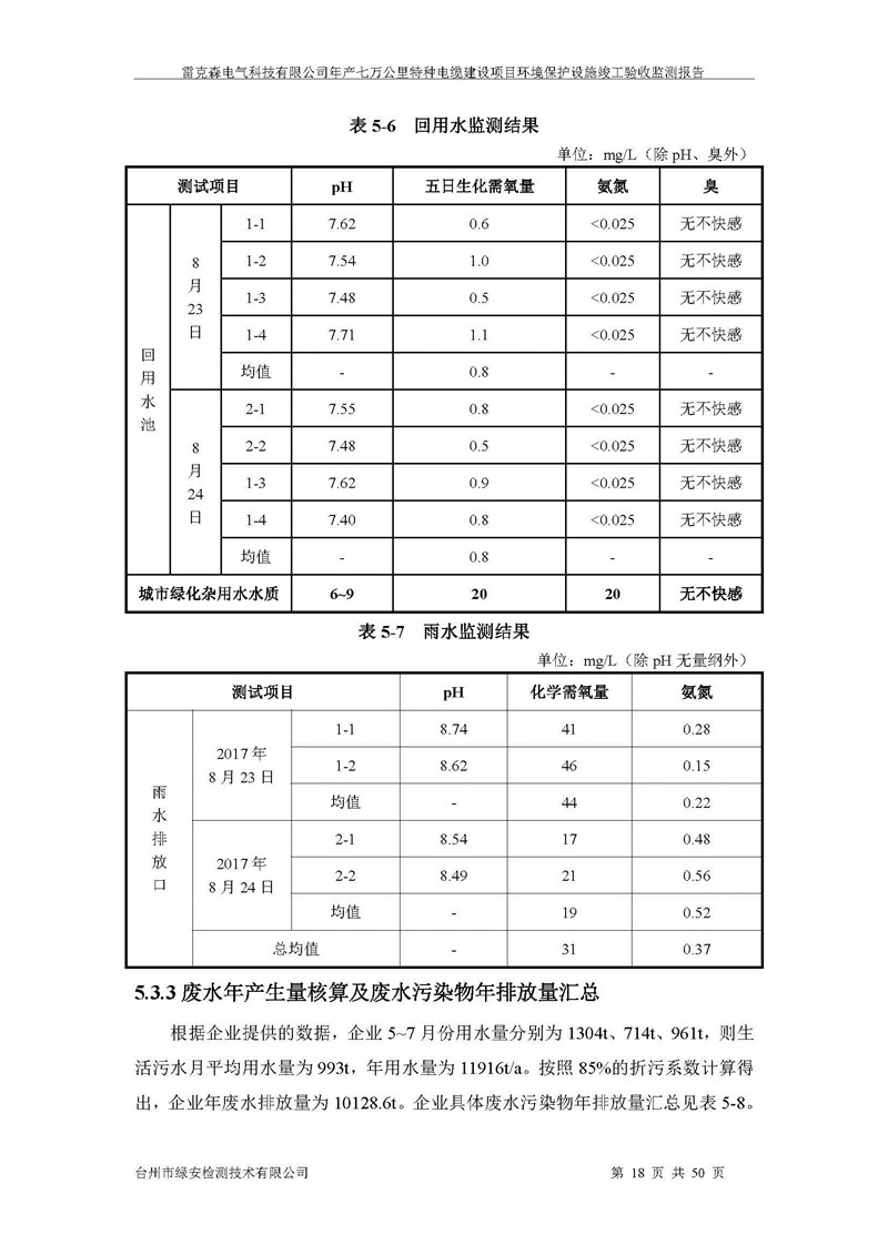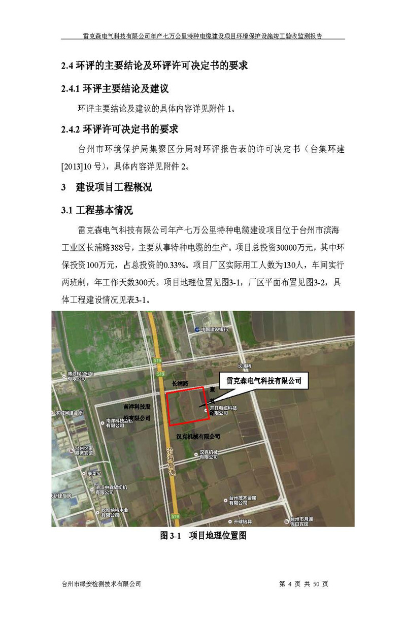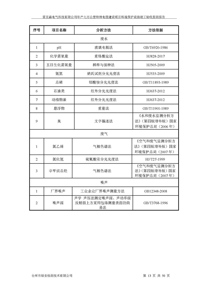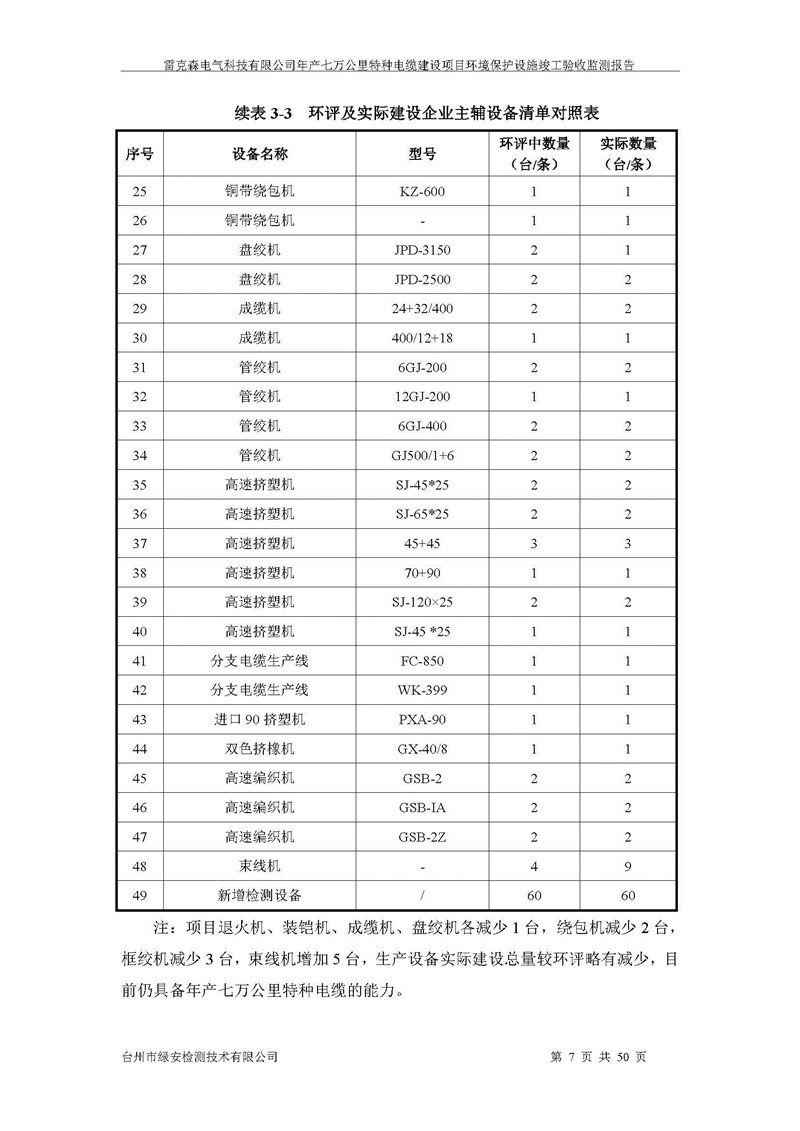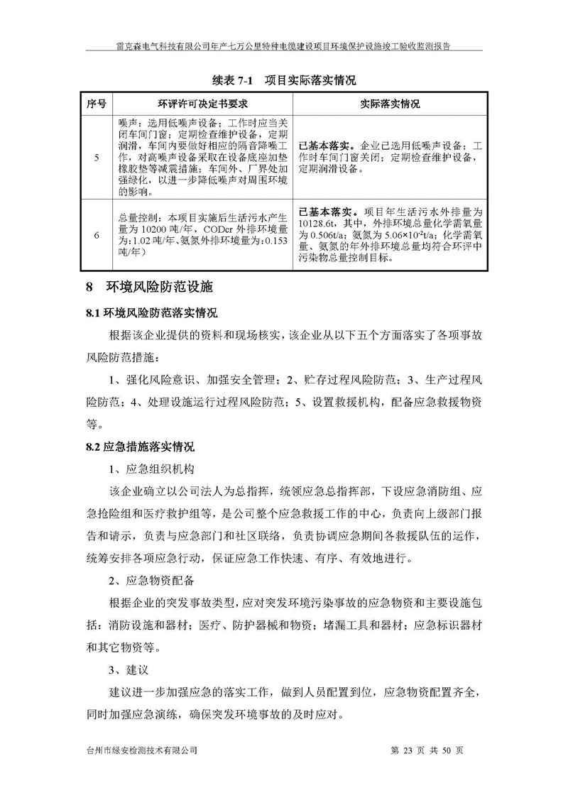 雷克森电气科技有限公司年产七万公里特种电缆建设项目环境保护设施竣工验收监测报告及验收意见公示。