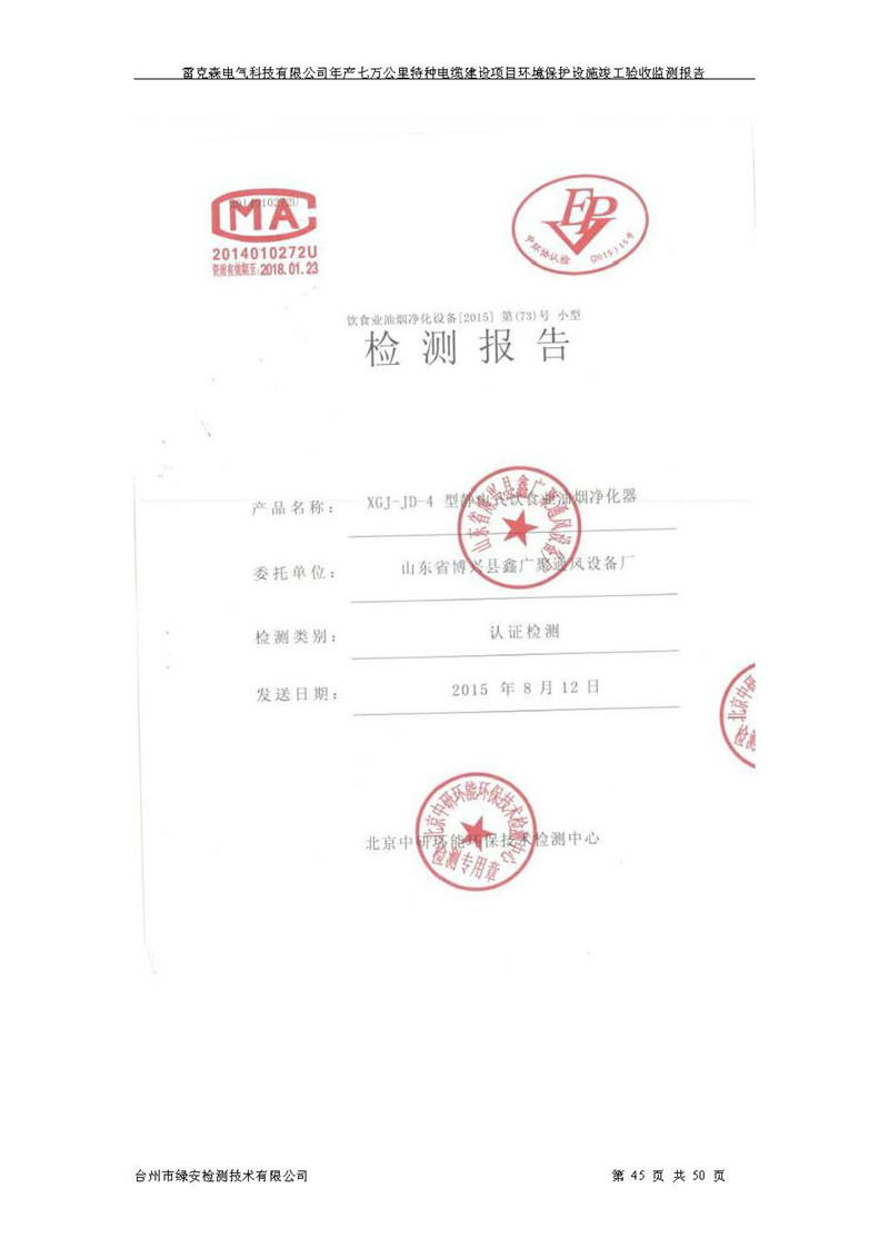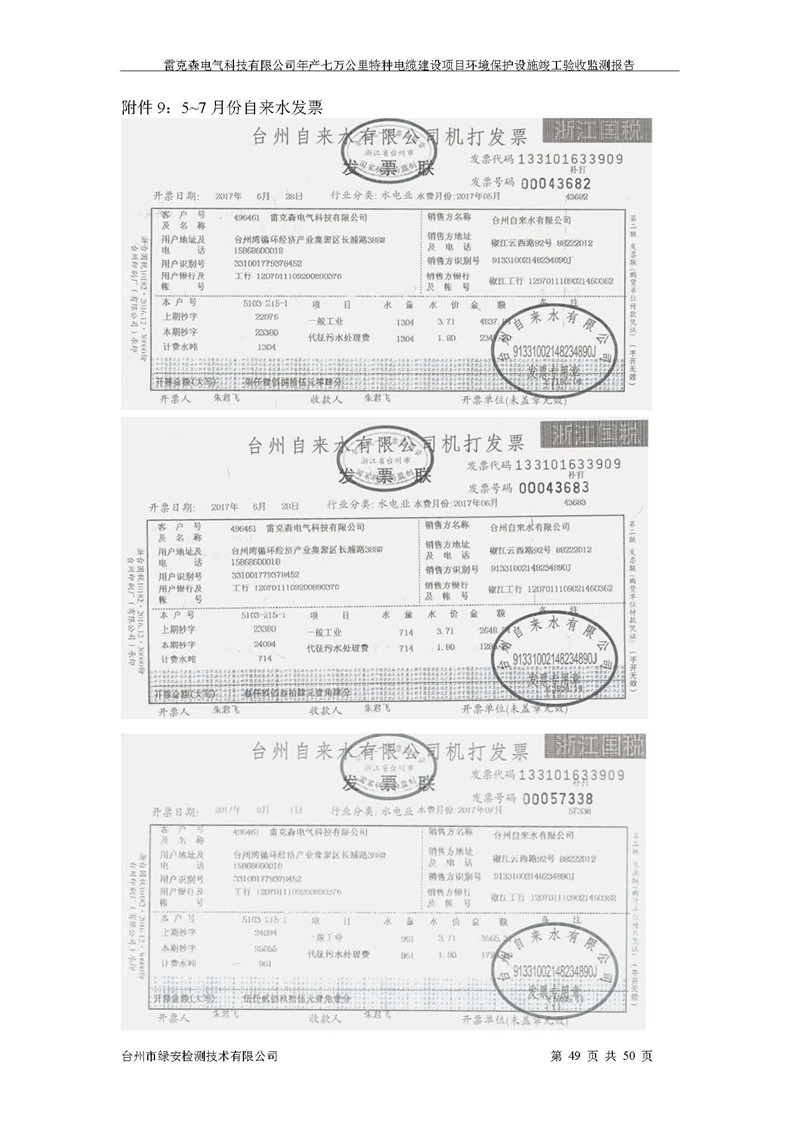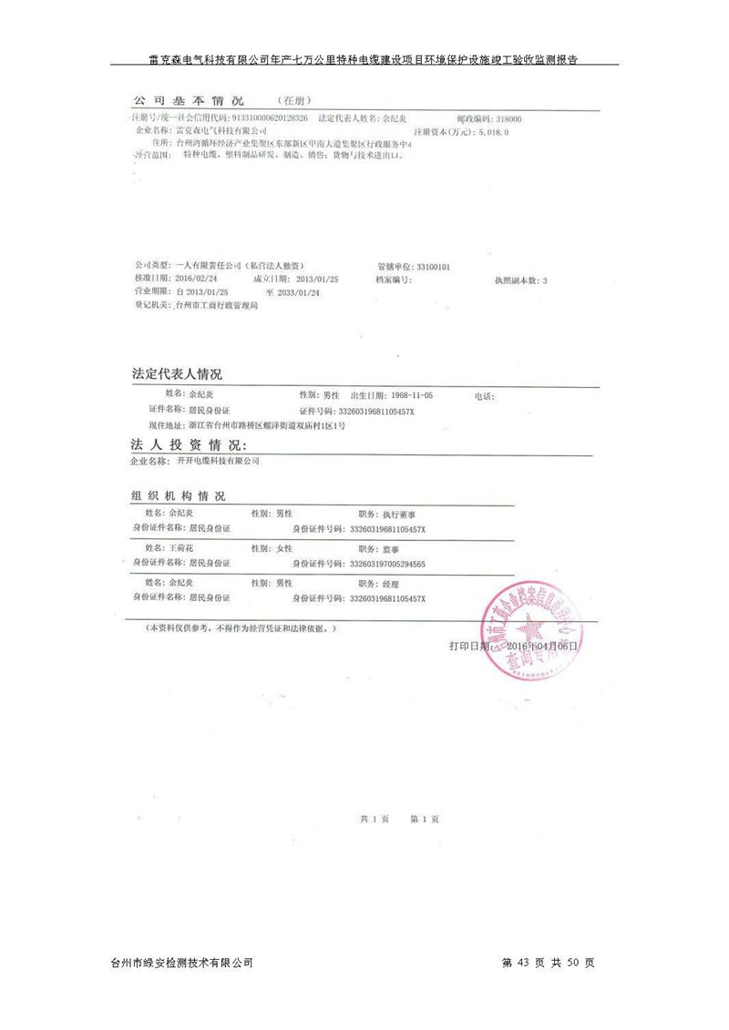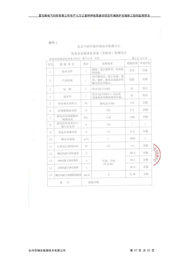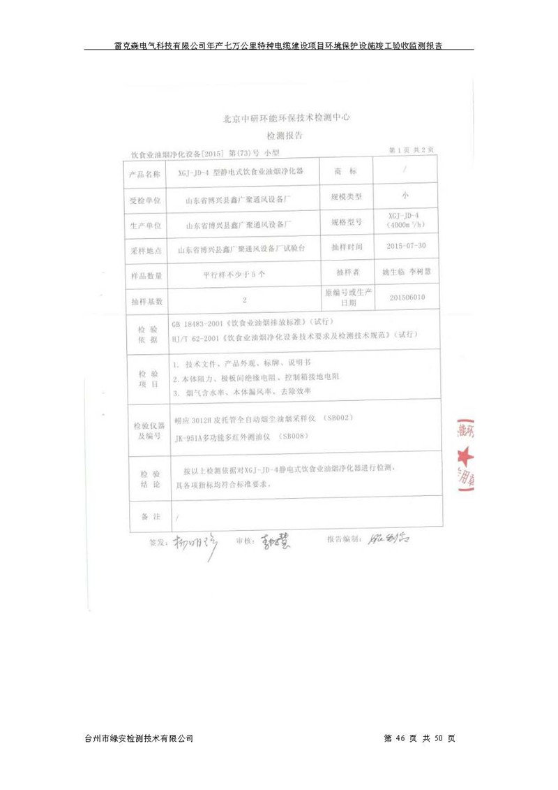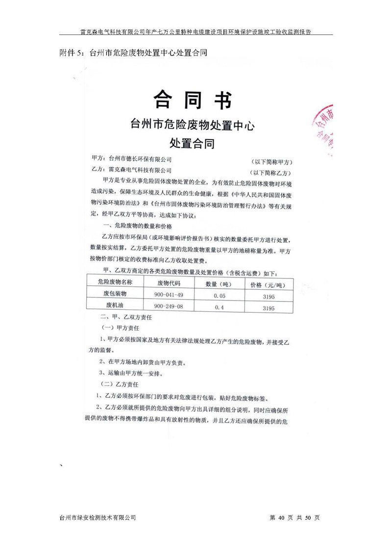 雷克森电气科技有限公司年产七万公里特种电缆建设项目环境保护设施竣工验收监测报告及验收意见公示。