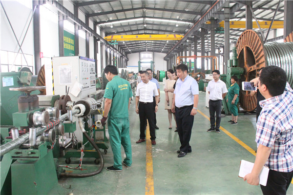 2018年9月19日,台州湾集聚区管委会为扎实推进“攻坚三季度,冲刺四季度”活动,深入践行“妈妈式服务”,管委会主任黄继满等一行5人走访我司,深入车间一线,了解企业生产及经营情况,公司董事长余纪炎先生亲自接待。 座谈会中,黄继满主任谈及我们开开电缆是集聚区第一批入园的企业,鼓励企业振奋精神,拉高标杆,升级装备,体现龙头企业引领作用,不断扩大产能,实现今年产值目标,力争明年产值翻一番。